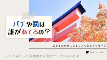 あなたの幸せ 『バチ』をあてるのは誰なのか 「〇〇をしたらバチが当たる」昔から言われてきたし、無意識に思ってしまってる。でも誰がバチをあてるんだろう? 2021.10.12 2022.03.27 あなたの幸せ